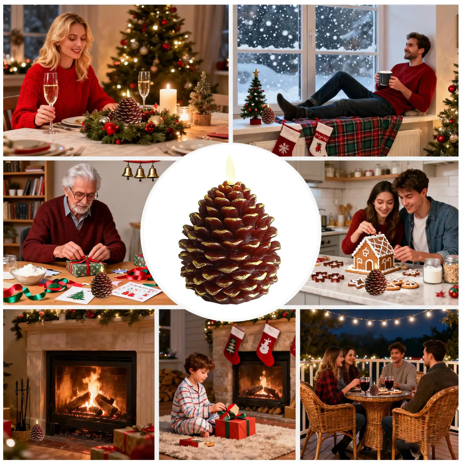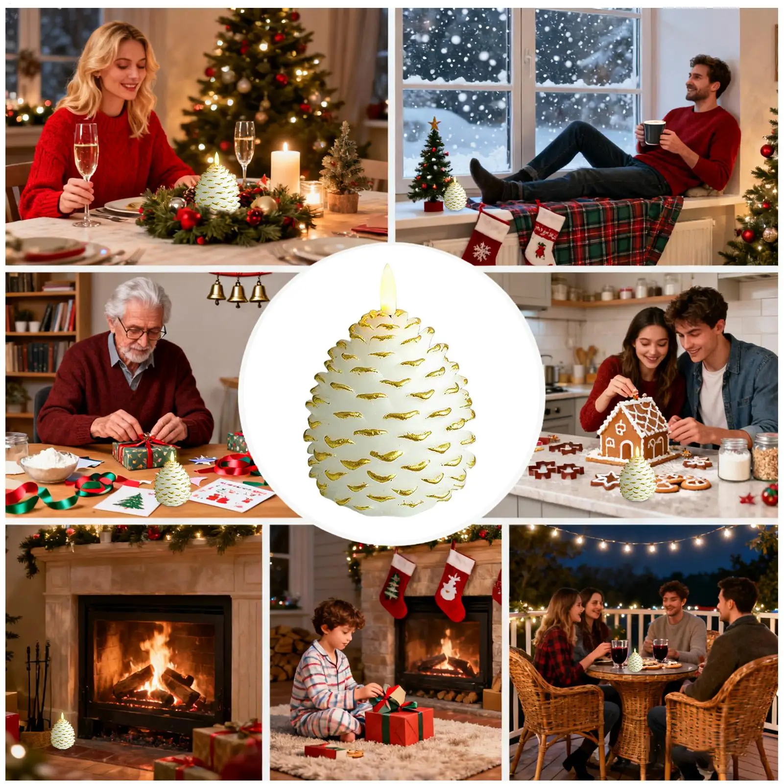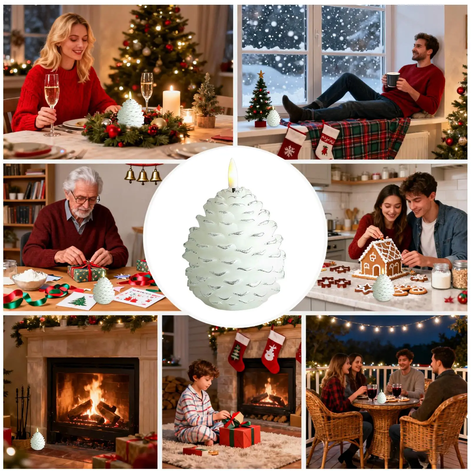 1. Authentisches Weihnachtsambiente: Die flammenlosen Tannenzapfenkerzen mit ihren realistischen 3D-Details fügen sich perfekt in die Weihnachtsdekoration ein und schaffen eine einladende Atmosphäre – ideal für festliche Treffen oder gemütliche Abende.