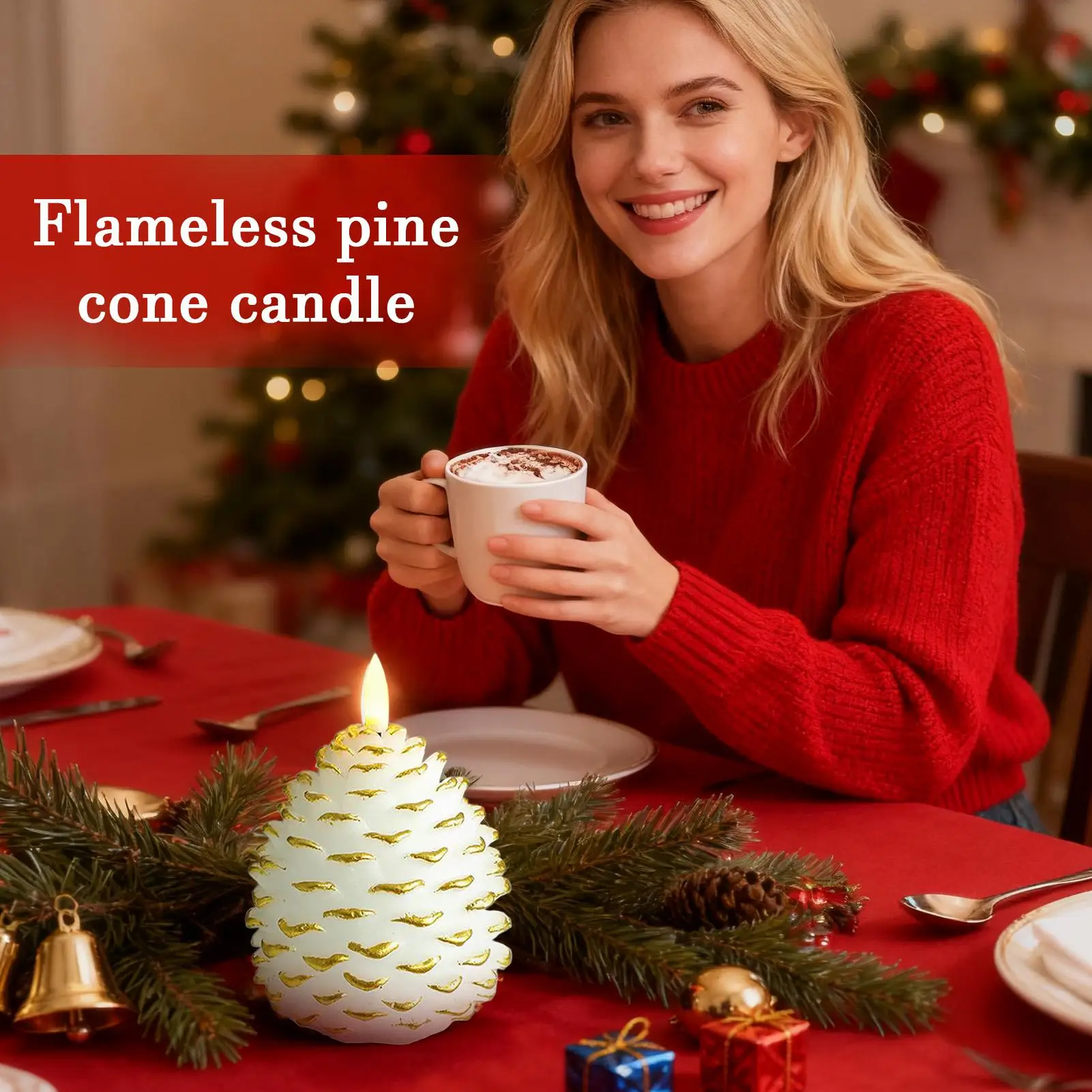 Flammenlose Tannenzapfenkerzen mit realistischem Flackern, ideal für Winter, Weihnachten und Thanksgiving